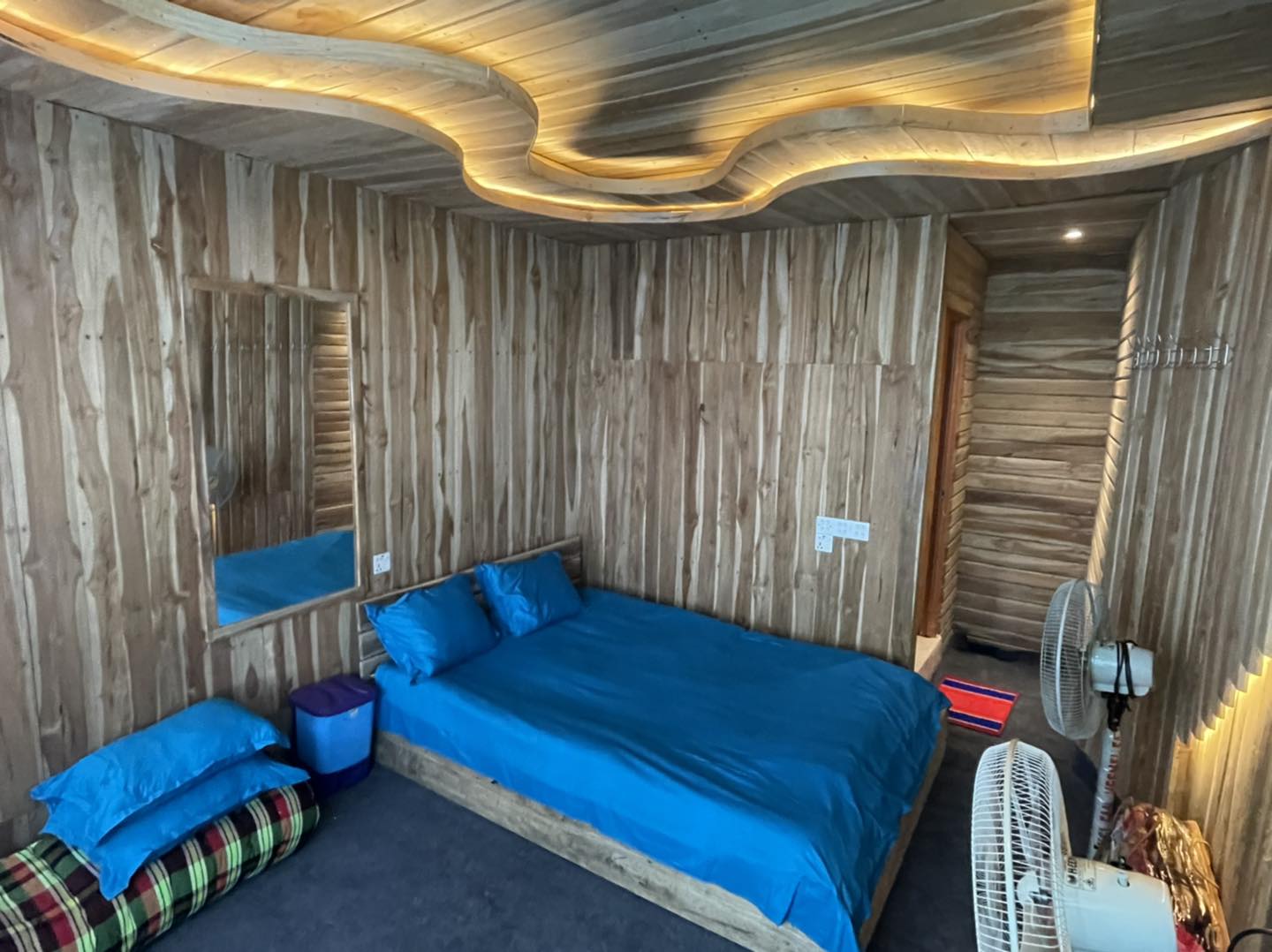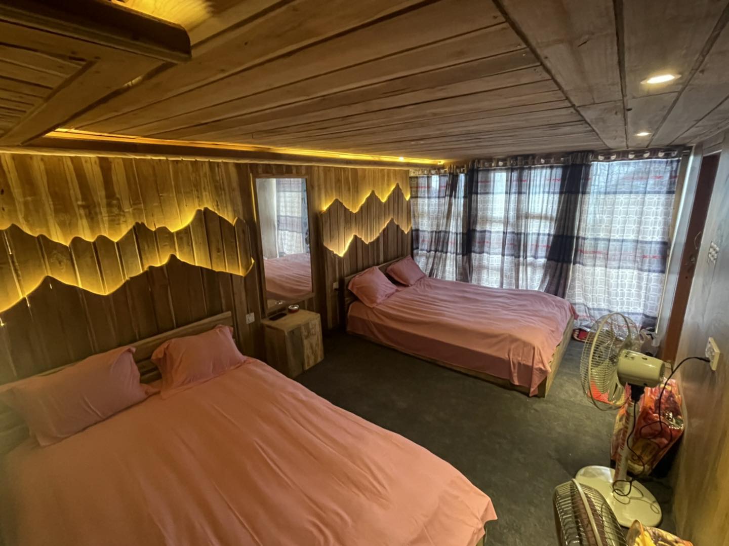 প্রতিটি রুমের ডেকোরেশন করা হয়েছে কাঠ দিয়ে। রুমের সামনের অংশে ব্যবহার করা হয়েছে আয়না দিয়ে দেয়াল, যেন পাহাড়ে জমা মেঘ গুলো রুমের বিছানায় শুয়ে বসে উপভোগ করা যায়। বাকী তিন পাশে কাঠ দিয়ে তৈরি ডিজাইন আপনাকে মনে করিয়ে দেবে, এই অঞ্চলের আদি বাসস্থানের কথা।